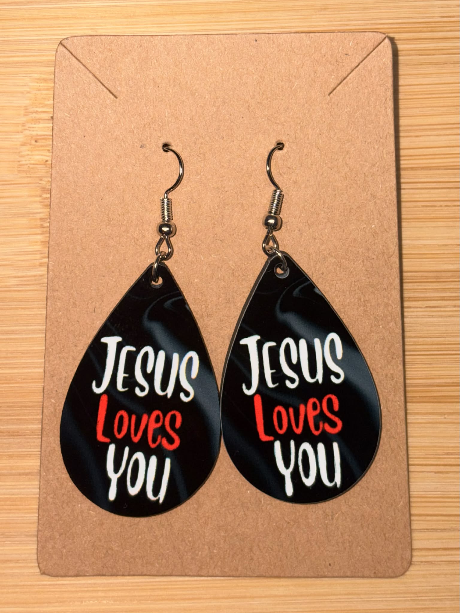 Earrings- Faith Based Jesus Loves You Black