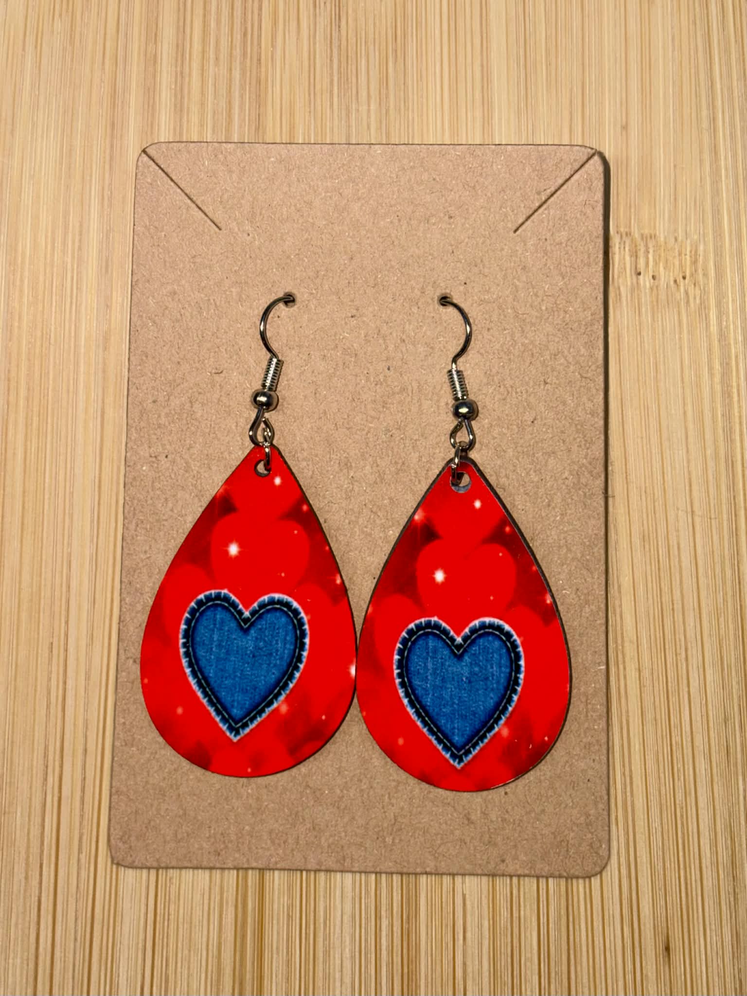 Earrings- Valentine's Day Red with Blue Jean Heart